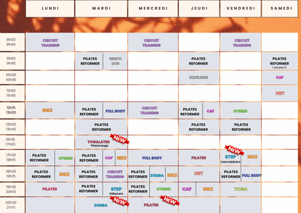 Retrouvez ici tous nos créneaux pour prendre soin de vous à votre rythme.